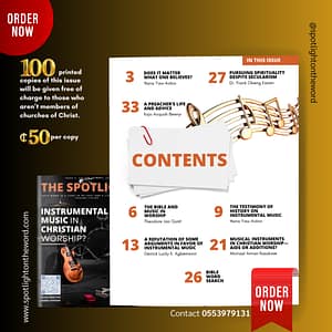 100 free hard copies of this Issue will be given to those who are not members of the Church of Christ, but for those who would like to get hard copies of the journal, you can order copies by contacting +233 553 979 131 via WhatsApp (Ghs 50.0 per copy).